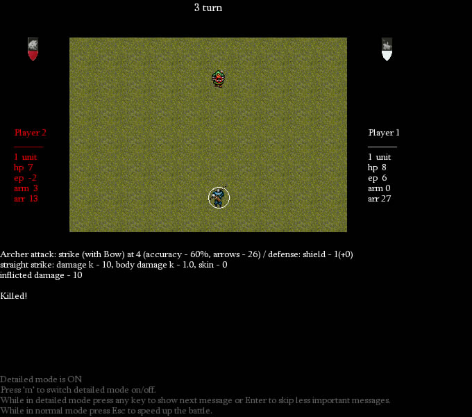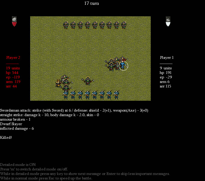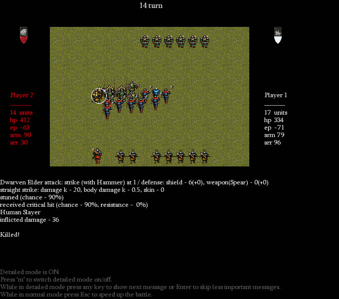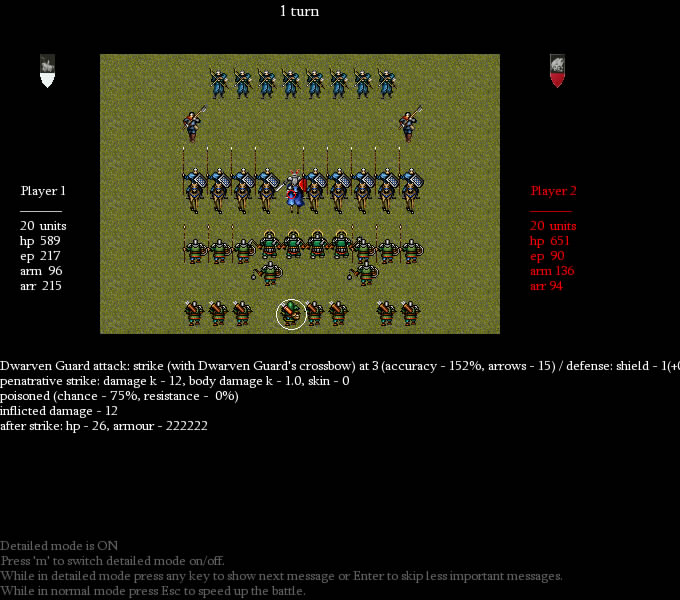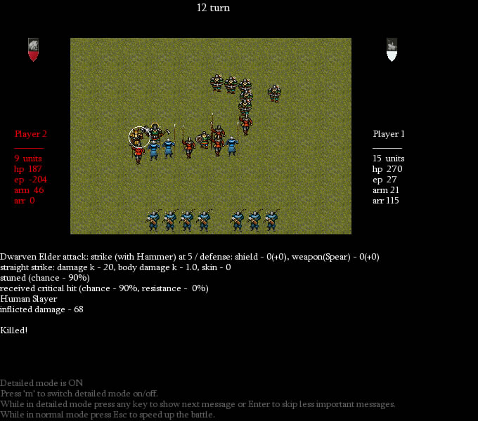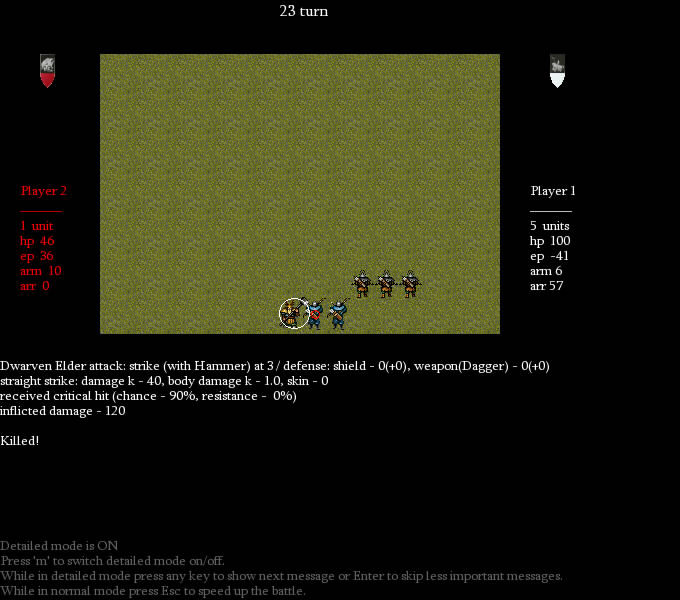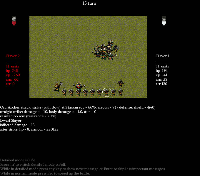 Total massacre! Dwarven crossbowers are slain. Archers draw daggers and rush in melee. But dwarven champions stand unshaken.