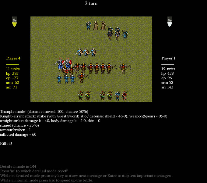 Deadly strike by my heroic swordsman. He slayed a knight moments ago and now brings down that pesky horseman.